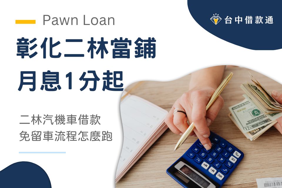 在彰化二林地區急需用錢,二林當鋪提供方便的汽機車借款服務,不僅合法月息1分起,當舖借款條件也只需借款人年滿18歲,且本人名下擁有的車輛,攜帶雙證件及行照前來彰化二林當舖即可辦理。汽機車借款除了不限車種、不限車齡以外,免留車還可以讓借款人繼續使用車輛。而彰化當鋪服務範圍遍及彰化地區包括彰化市、員林市、芬園鄉、花壇鄉、和美鎮…